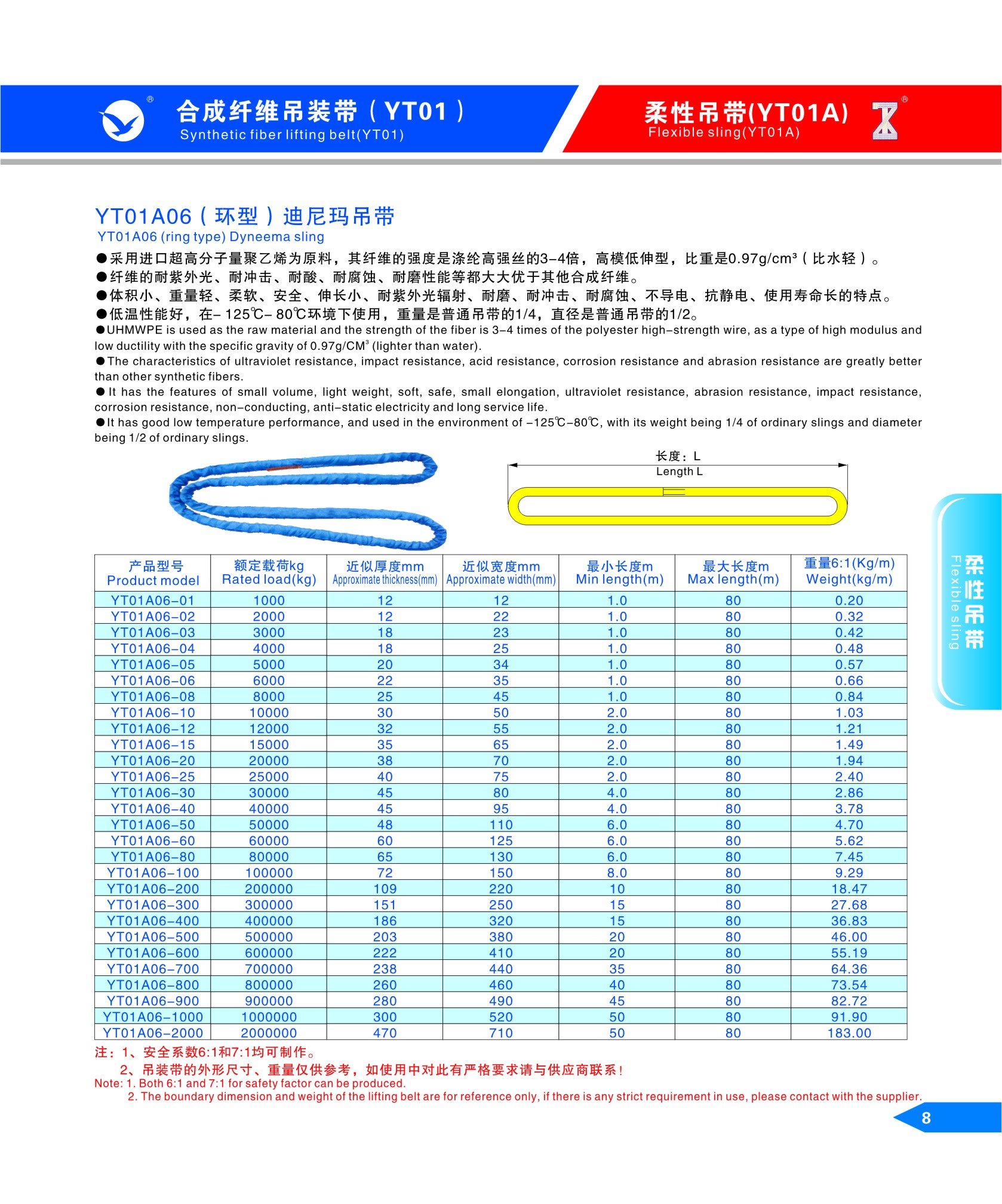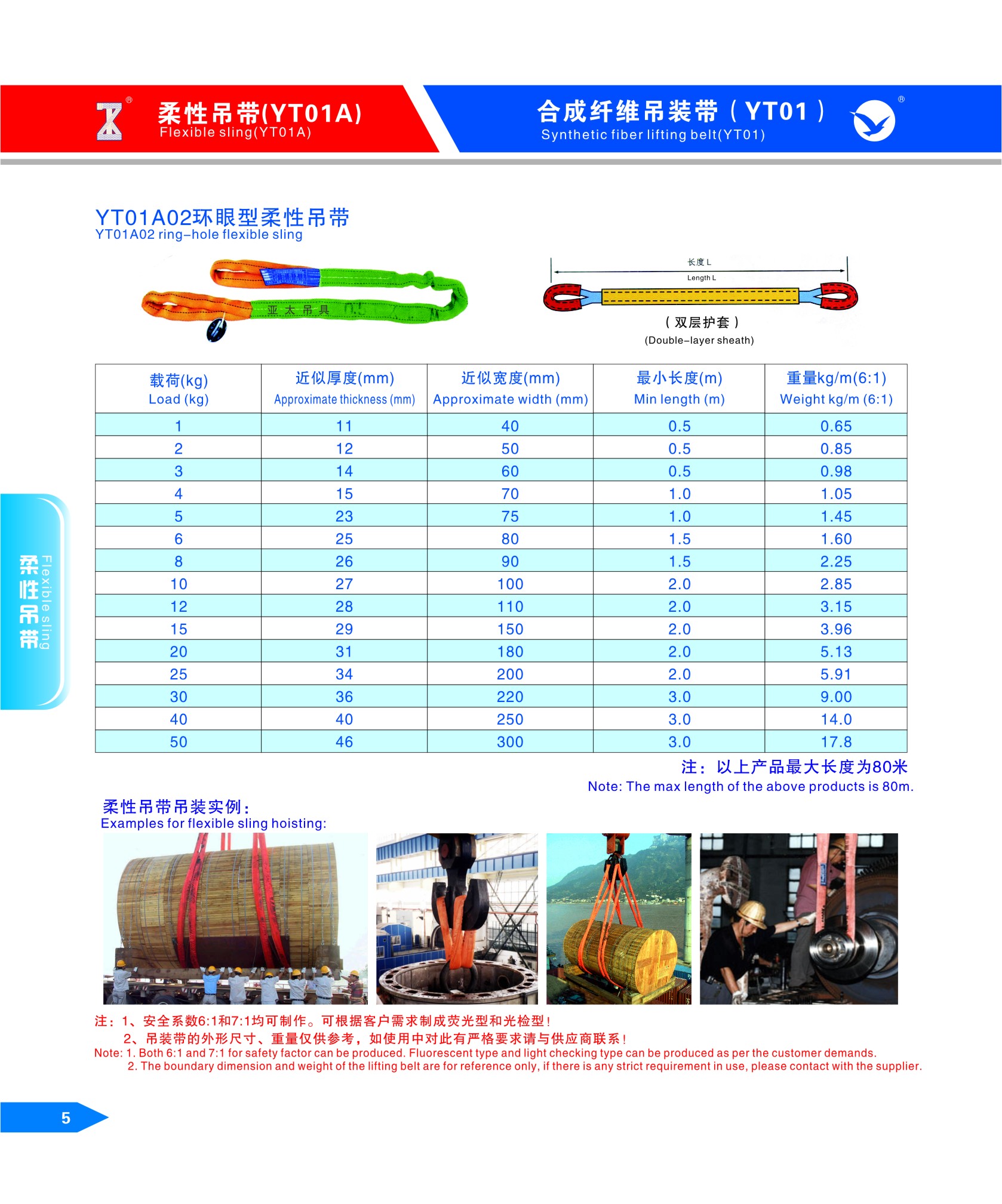 我公司生產(chǎn)的合成纖維吊帶是吊裝繩和鋼絲繩的換代產(chǎn)品,比同類金屬繩鏈相對(duì)輕便,同時(shí)操作起來(lái)也更為安全、簡(jiǎn)易快捷,減少了對(duì)人身反向傷害的可能性;在使用過(guò)程中有減震、不腐蝕、不導(dǎo)電,且在易燃易爆環(huán)境下無(wú)火星等特點(diǎn);可減少吊裝作業(yè)對(duì)操作表面損傷和對(duì)噴漆表面的損害。合成纖維吊裝帶按類型分,主要分為圓型、吊裝帶和扁平吊裝帶兩大類。扁平吊裝帶主要由尼龍纖維(聚胺合成纖維)、滌纖維(聚酷合成纖維和纖維(聚丙合成纖維)制成它們各有特性,可適合于不同的環(huán)境場(chǎng)合,但不同材質(zhì)的吊裝帶絕對(duì)不可以混用。具體的扁平帶的特性可見(jiàn)扁平吊裝帶圓型吊裝帶的材質(zhì)主要是滌綸合成纖維(聚酷),外層用滌圓套管做為保護(hù)層,而內(nèi)芯用連續(xù)的滌綸芯紗作為承受吊裝負(fù)載。(見(jiàn)圓形吊裝帶。 )
